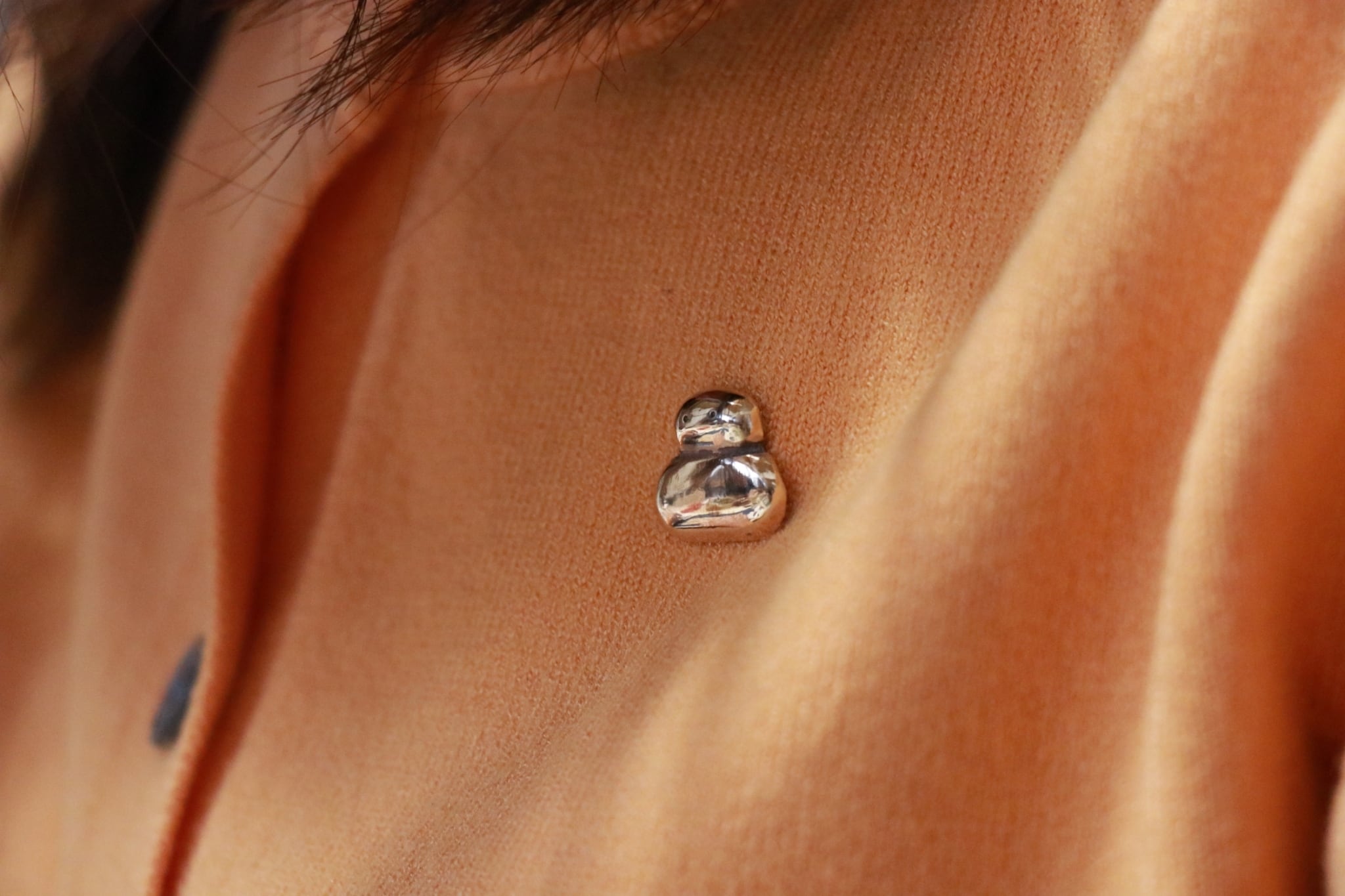 水野美紅さんの鋳物作品「かがみもち」が小さなピンバッジになりました。ブロンズの素材は経年変化もお楽しみいただけます。一つずつ手作りされたピンバッジです。